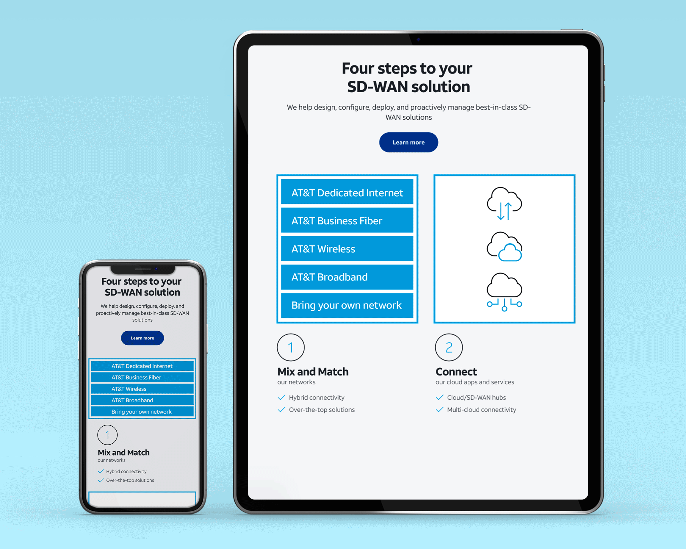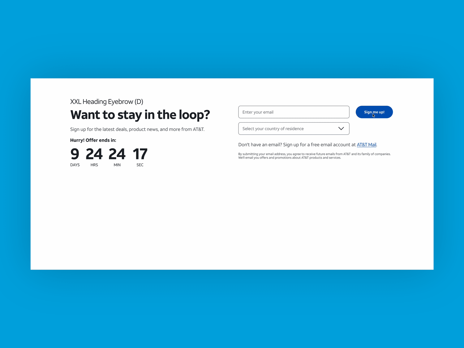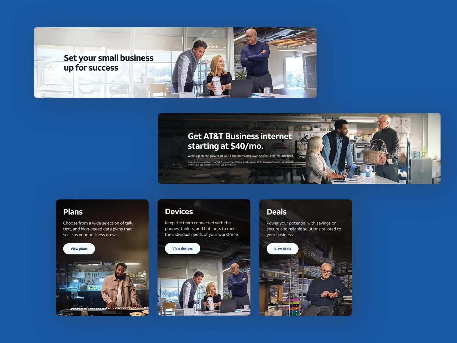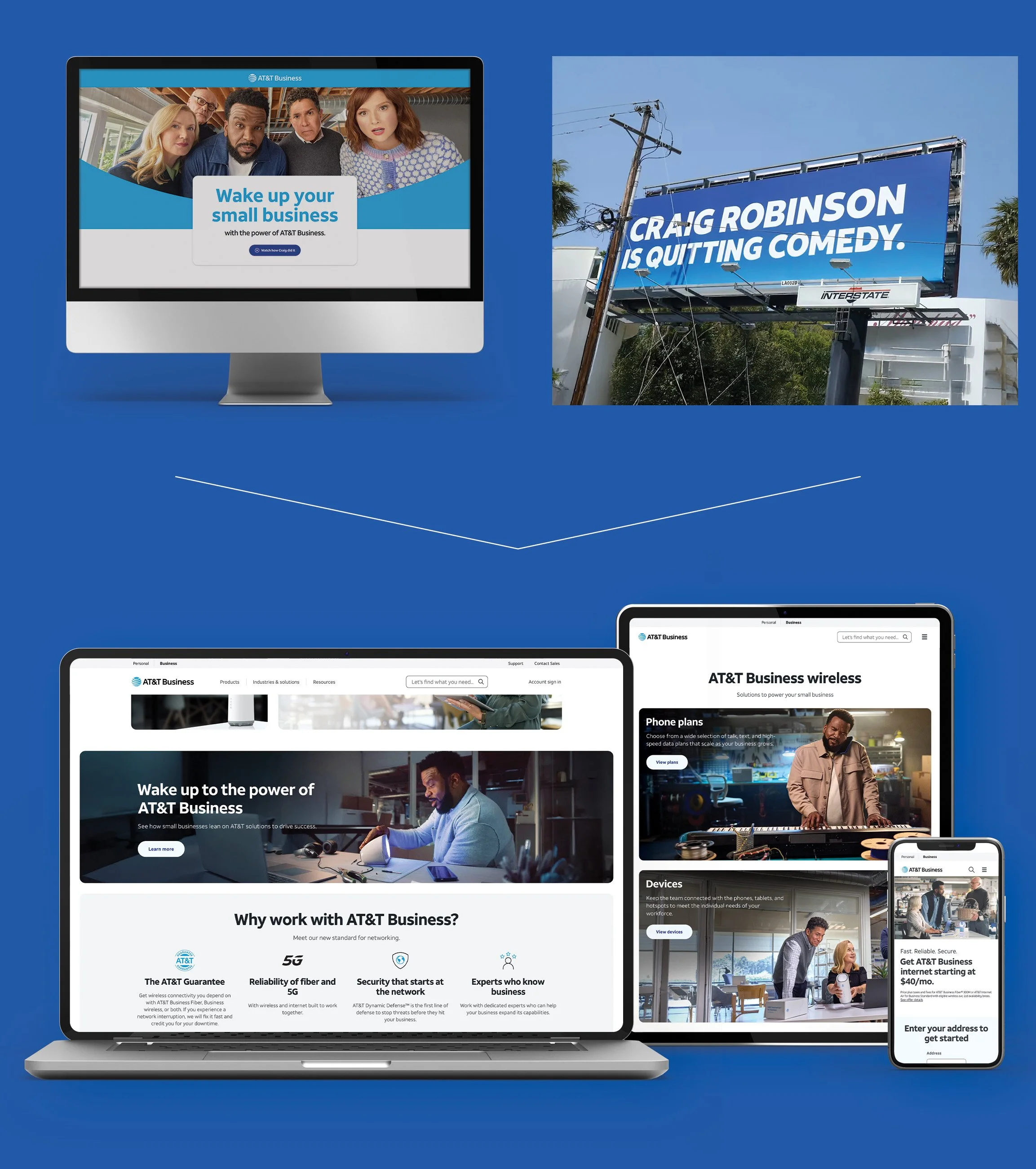 Following the success of the new design system for AT&Tâs consumer website, leadership saw the potential for growth for their business site. I was brought on to help migrate the old site to the new design system, which included the design of infographics and interactive elements to elevate the B2B customer experience. I also designed upper funnel marketing placements that supported national offers such as the Wake Up with Craig campaign featuring celebrities from the hit show, The Office.